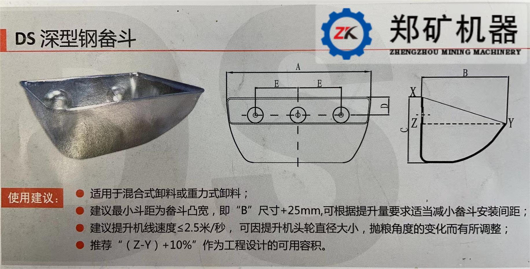 膠帶斗式提升機(jī)的優(yōu)點(diǎn)是:成本低,自重較小,工作平穩(wěn)無(wú)噪聲,可采用較高的運(yùn)行速度,生產(chǎn)效率較高,磨損較小;主要缺點(diǎn)是:料斗在膠帶上的固定較弱,因?yàn)槭怯媚Σ羵鬟f牽引力,需要有較大的初張力。因此,它主要用于中小輸送量和中等提升高度,輸送密度較小或中等的粉粒狀物料。普通膠帶輸送物料溫度不易超過(guò)60℃,采用耐熱膠帶允許達(dá)到150℃。
